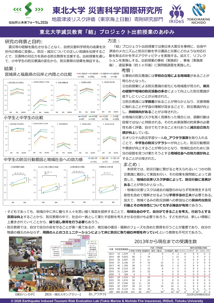 『仙台防災未来フォーラム2025 ー 東日本大震災から15年 つなぐ想い、つむぐ未来 ー』においてブース展示をいたします。お近くにお越しの際はぜひお立ち寄りください!